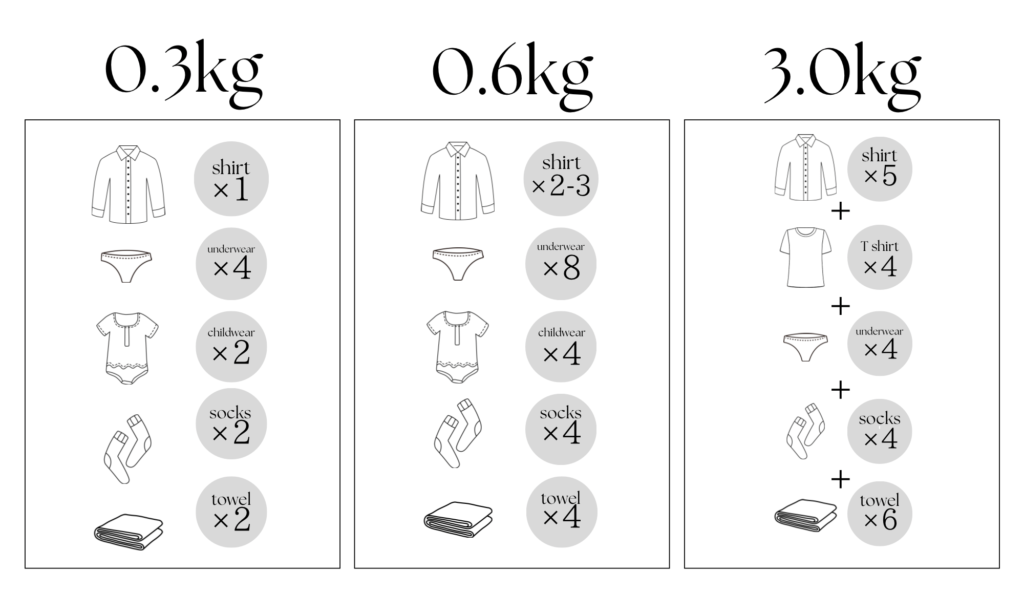 容量ごとに、洗濯できる量は下の図を参考にしてみてください。